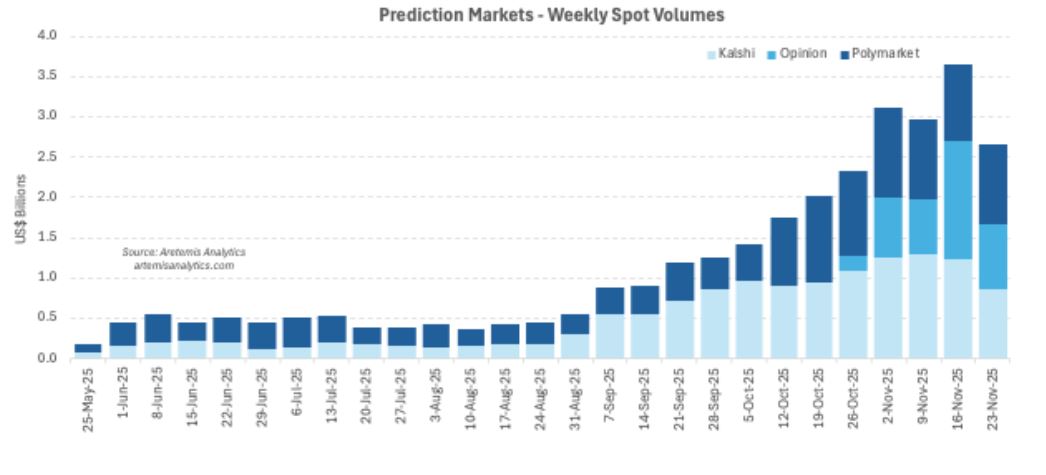Leading platforms such as Kalshi, Polymarket, and Opinion have seen a marked acceleration in activity, with cumulative trading volumes surpassing $3 billion - an indication of growing adoption, liquidity, and product-market fit.