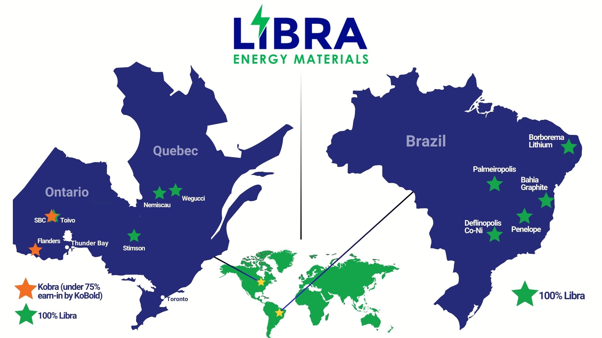 Libra (CSE: LIBR) (OTCQB: LIBRF) (FSE: W0R0) is a Canadian mineral exploration company focused on the discovery and development of the critical minerals necessary for the green energy transition. Libra's Flanders North, Flanders South, and SBC projects in Ontario are being explored under a CAD $33 million earn-in deal with KoBold Metals Company. In addition, Libra has 100% ownership of another four lithium projects in Ontario and Quebec, Canada, as well as another twenty-one lithium projects, eight graphite projects, and one cobalt project in Brazil – an emerging critical minerals hub. The Libra team comprises a mix of seasoned executives, engineers, and geoscientists, with extensive experience in mining and mineral exploration, capital markets, asset management, energy, and First Nations engagement.