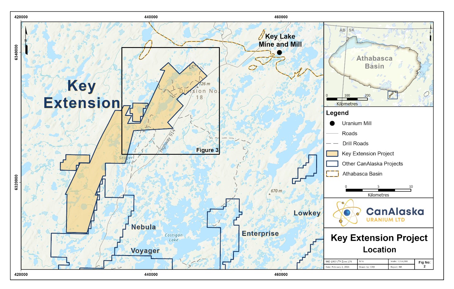 Saskatoon, Saskatchewan--(Newsfile Corp. - February 4, 2026) - CanAlaska Uranium Ltd. (TSXV: CVV) (OTCQX: CVVUF) (FSE: DH7) ("CanAlaska" or the "Company") is pleased to announce the start of the 2026 drill program on the Key Extension project (the "Project") in the southeastern Athabasca Basin (Figure 2). The 2026 Key Extension winter program will focus on a series of high-priority target areas identified from recent high-resolution airborne geophysical surveys and the review of historical drilling programs on the project. One drill has been mobilized to the project site and drilling has now begun (Figure 1). The Key Extension project is 100% CanAlaska-owned and is located approximately 15 km south of the past-producing Key Lake Mine and currently operating Key Lake Mill.