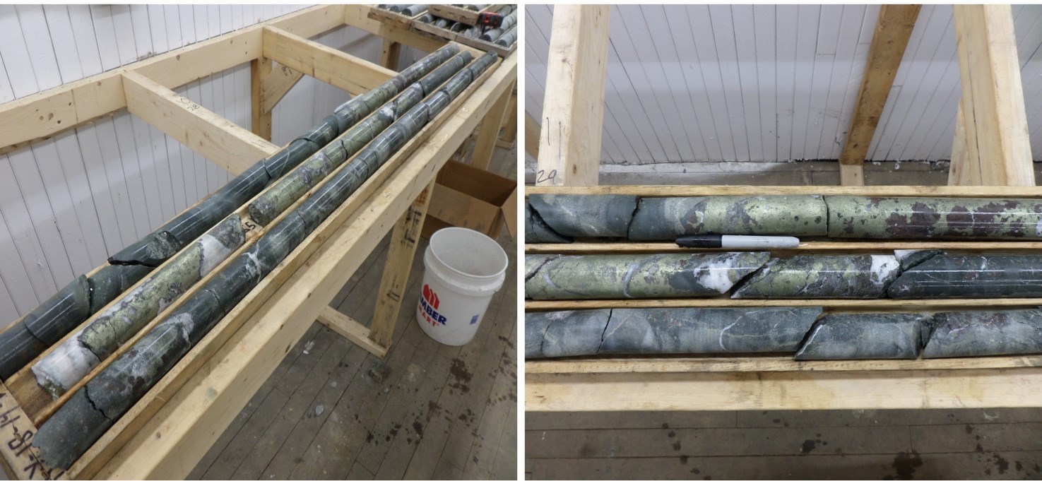 Ky-18-14 (1,158 g/t Ag, 9.19% Cu and 9.04% Zn over 3.00 meters core length)