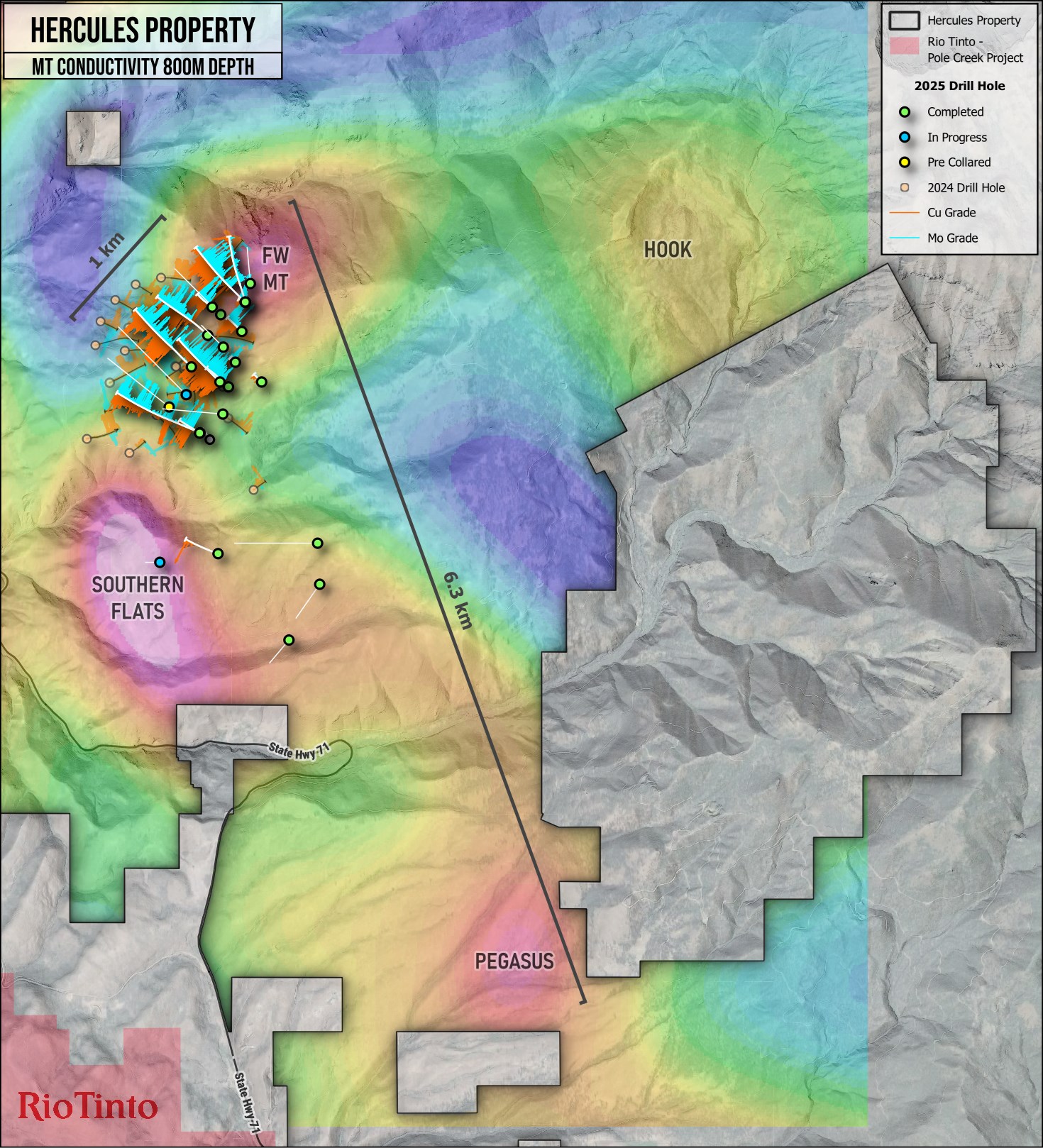 The Private Expansion represents a strategic addition to the Company's >100,000-acre land position in the Hercules Copper Belt. The lands include both surface and mineral rights, directly along trend with the Leviathan Porphyry Copper System, as well as a series of strong MT conductivity anomalies extending along a south-trending corridor.