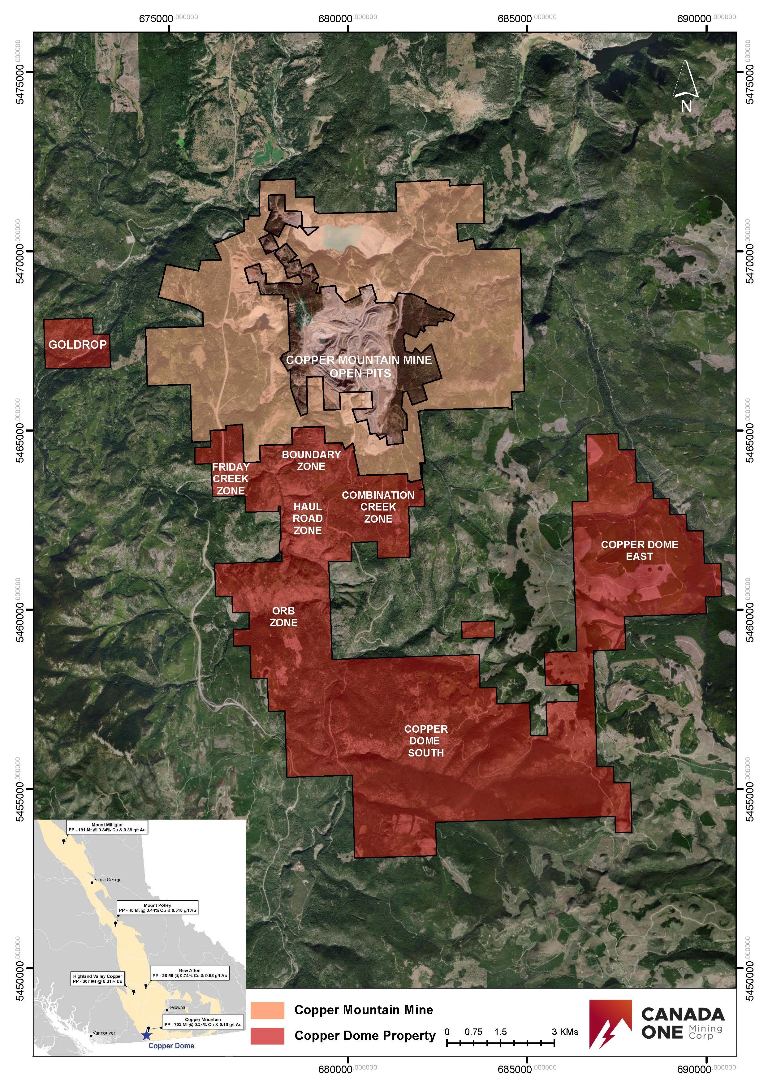 Peter Berdusco, President and Chief Executive Officer of Canada One commented: "The progress made at Copper Dome has been meaningful on multiple fronts. We expanded the land package, strengthened our permitting position, advanced our understanding of several priority target zones and added high-grade results that broaden the opportunity set at the Project. With proximity to Hudbay Minerals' producing Copper Mountain Mine and Kodiak Copper's MPD Project, we believe Copper Dome is becoming a more robust and better-defined exploration story. We will continue refining and advancing drill-targets and look forward to sharing our Friday Creek rock sample results in April."