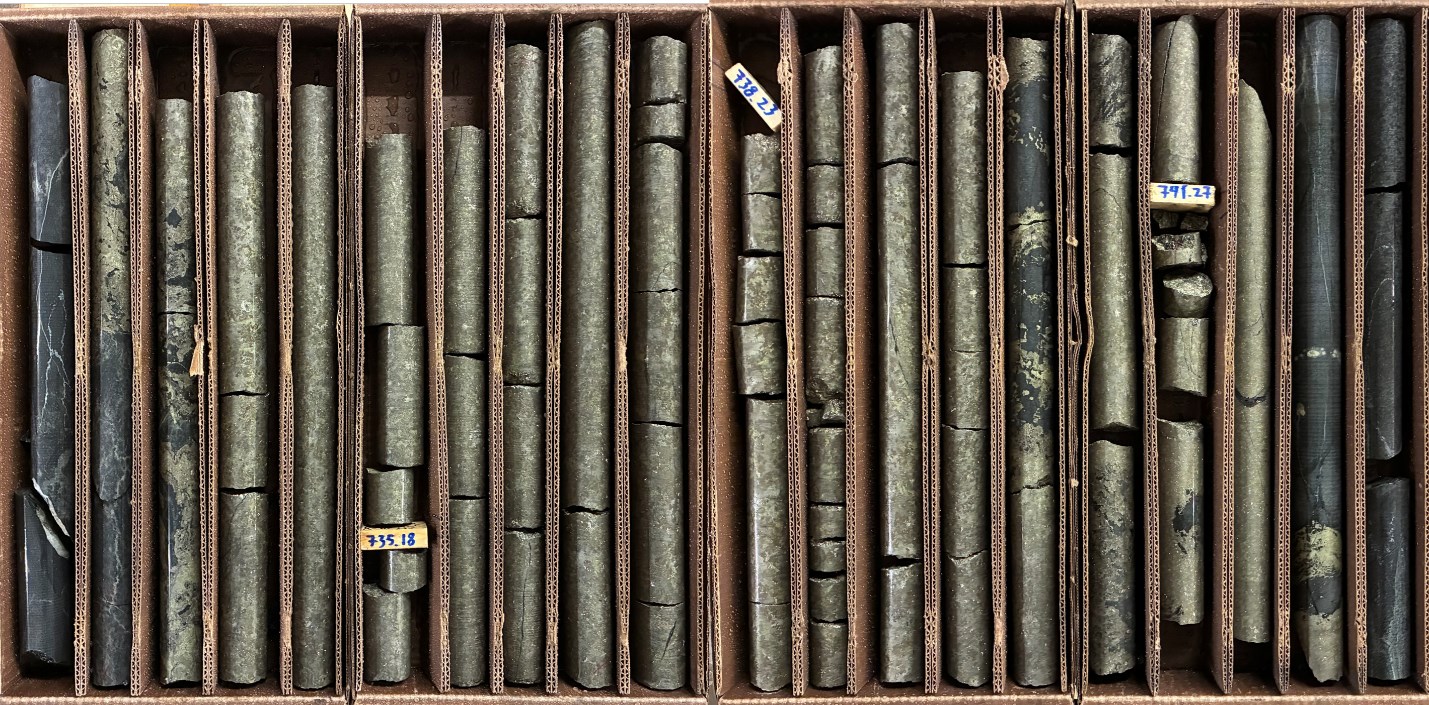 Figure 3: Drill hole 25TK0568A, drilled approximately 13 meters to the southwest of previously reported drill hole 25TK0566, intercepted 8.88 meters of MSU starting at 733.16 meters.