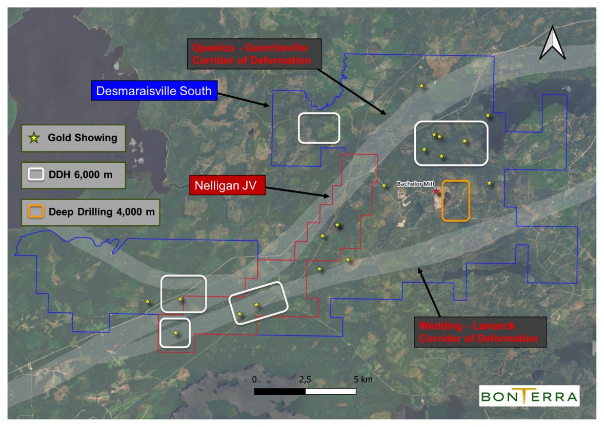 Val-d'Or, Quebec--(Newsfile Corp. - April 13, 2026) - Bonterra Resources Inc. (TSXV: BTR) (OTCQX: BONXF) (FSE: 9BR2) ("Bonterra" or the "Company") is pleased to present its 2026 exploration plans at its 100% owned Desmaraisville South Project (the "Project"). Bonterra is planning a 10,000 to 12,000 meters ("m") diamond drill program starting mid-April and followed by other exploration programs to be completed by year-end (See Figure 1, which highlights the targeted areas).