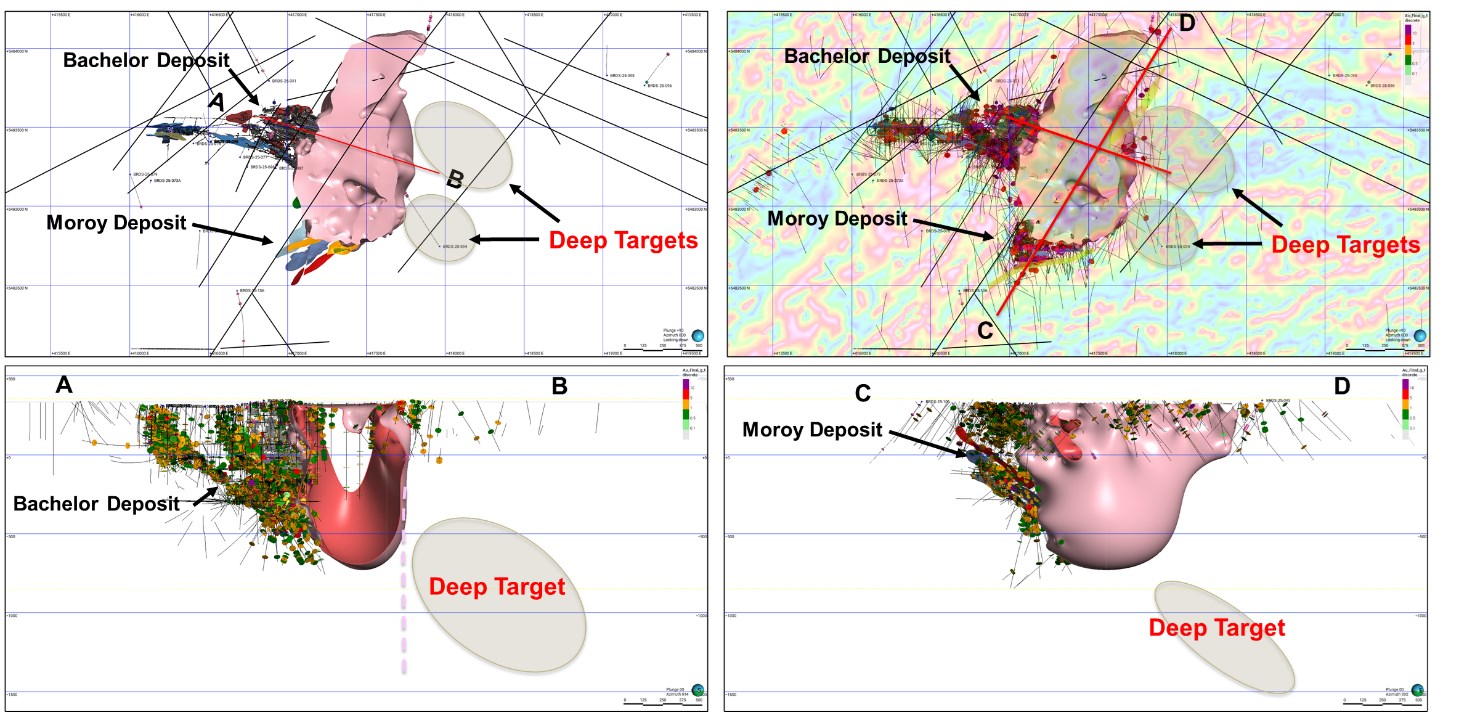 The Company is planning a deep drilling program to test potential gold targets around the O'Brien intrusive, which hosts the Bachelor and Moroy deposits on the Western side (see Figure 2). The program aims to evaluate potential of new gold mineralization on the eastern side of the intrusive, with drilling targeting an approximate vertical depth of 900 m.