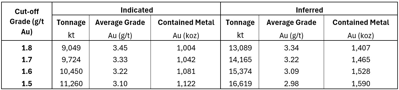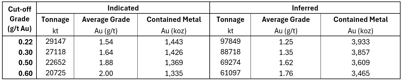 - 1.59 g/t Au grade of Indicated MRE, an 8.9% increase (from 1.46 g/t Au)