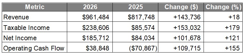 Net income rose to $185,712, more than doubling from $84,034 in the prior-year period.