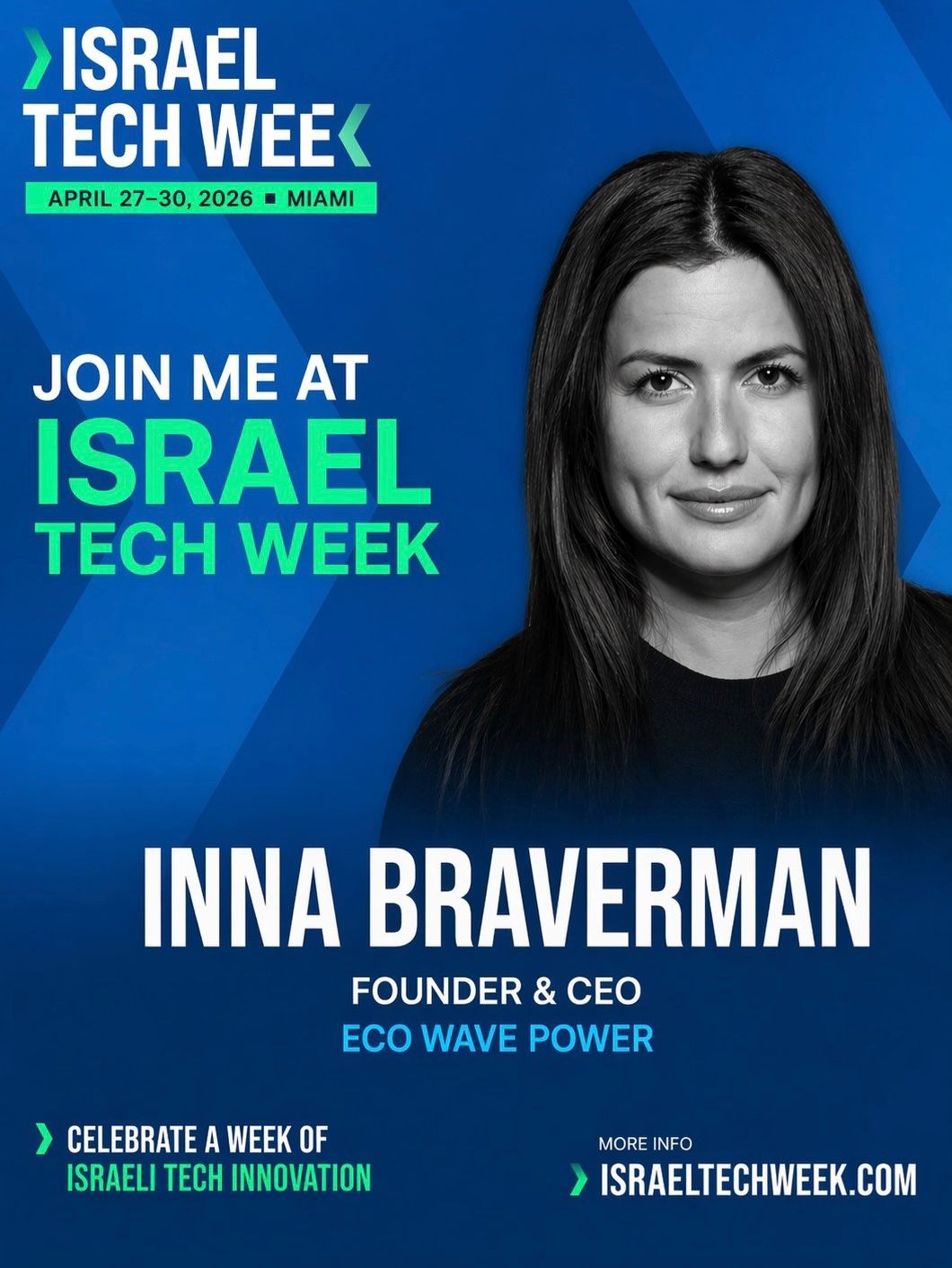 "We are excited to participate in Israel Tech Week Miami and share Eco Wave Power's vision for the future of renewable energy. As electricity demand continues to rise globally, we believe wave energy can play an important role in powering the next generation of cities, industry, and AI infrastructure. We look forward to connecting with investors, founders, and strategic partners during the event."