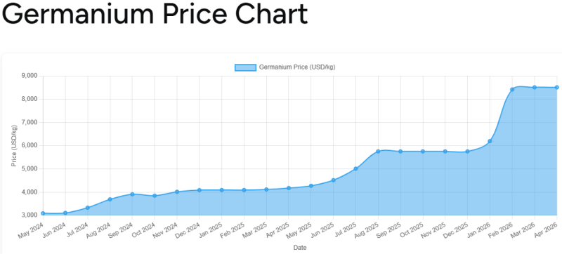 Since December 3, 2024, China, the largest producer of refined germanium, has banned germanium exports to the United States.  Germanium is not an openly traded commodity and recent spot prices have germanium at approximately USD $8,600.00 per kilogram.