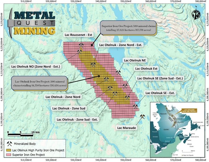 The Lac Otelnuk Iron Project , 100% owned by MetalQuest Mining, is one of  North America’s largest historic NI 43-101 Iron project , located in the heart of the Labrador Trough — a globally recognized iron district. ( https://metalquestmining.com/news/metalquest-mining-lac-otelnuk-iron-ore-project-overview/ )