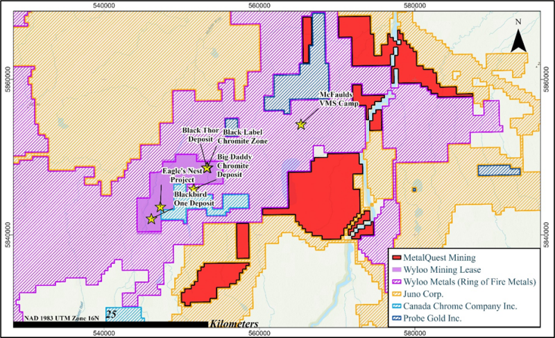 Figure 1:  Regional claim map highlighting landholders in the Ring of Fire and the location of MQM’s ROF-1 Project.