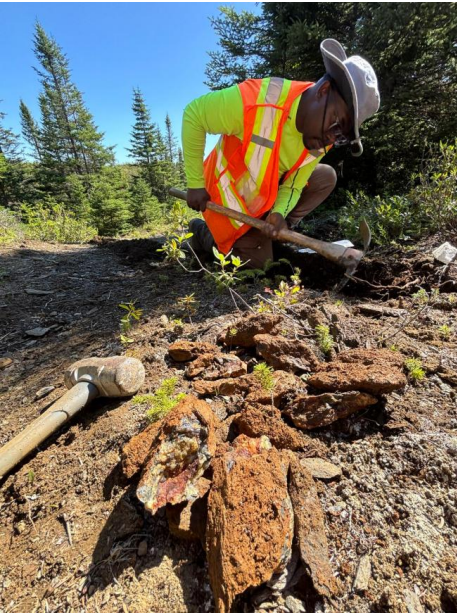 Figure 4 : Dr. Claude Nambaje, a geological consultant with International Metals Group, conducting ground-truthing work at New Age Metals’ Newfoundland Gold–Antimony Division. New Age Metals (TSXV: NAM | OTCQB: NMTLF | FSE: P7J2) and MetalQuest Mining are part of International Metals Group, and New Age Metals maintains a significant ownership interest in MetalQuest Mining.