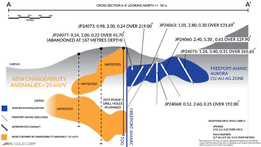 A review of recently released schematic figures from induced polarization (IP) data from nearby projects indicates that elevated chargeability anomalies do not consistently coincide with mineralization of interest. In porphyry–epithermal systems of the Toodoggone district, such chargeability responses can be interpreted as pyrite-rich phyllic alteration zones, with economic mineralization potentially occurring beneath, adjacent to, or offset from chargeability highs. As a result, IP data are most effective when integrated with geological mapping, structural interpretation, and geochemical information.