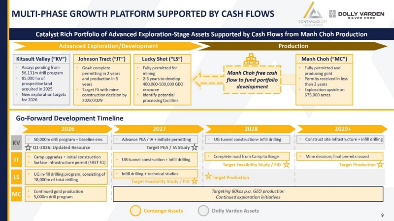 The young creative explorers that have made Dolly Varden a dominant player in the Golden Triangle are going to come onto those Contango projects, Johnson Tract, Lucky Shot and Manh Choh, looking for expansion, extension and discovery opportunities.”
