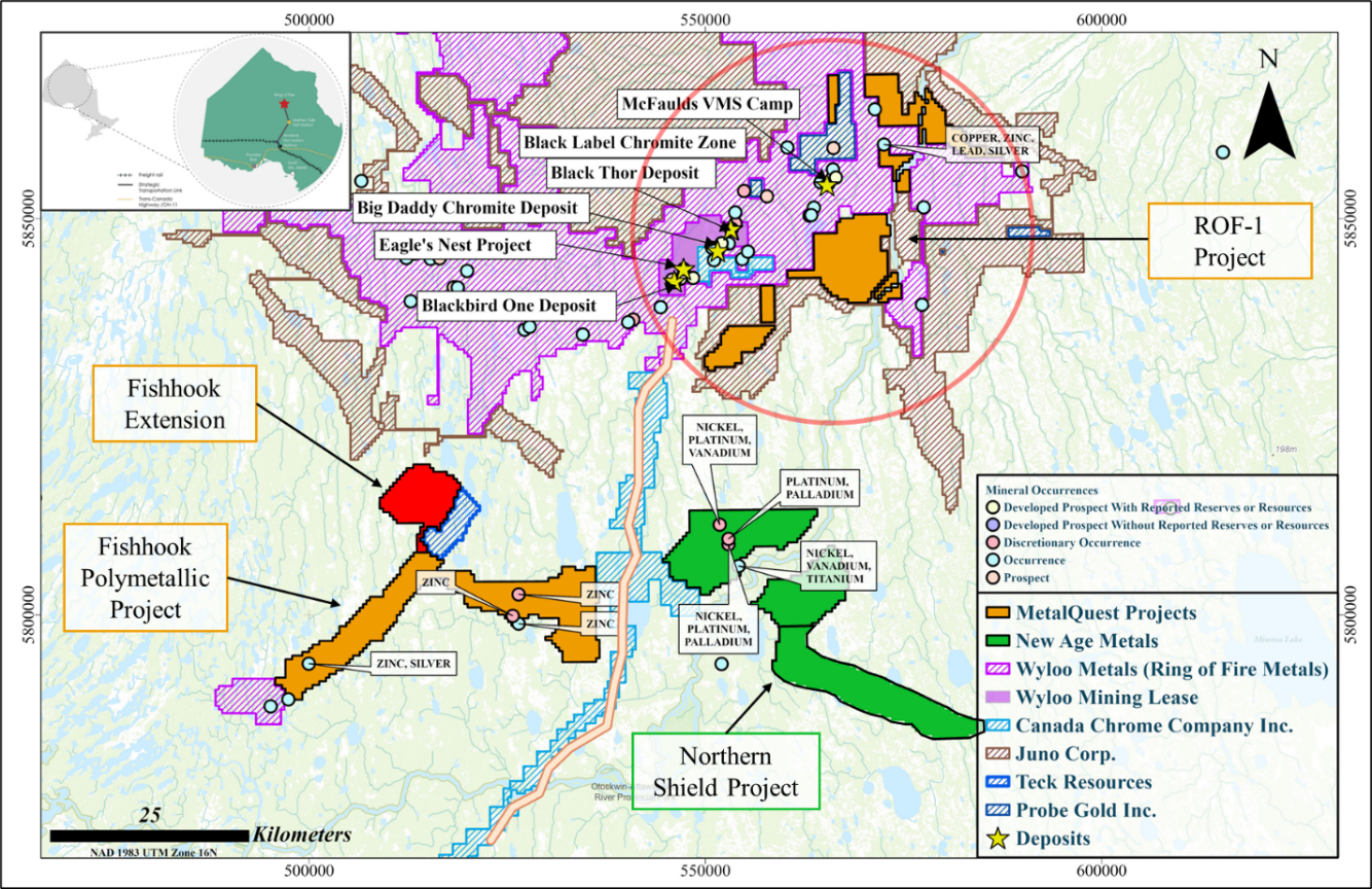 New Age Metals Inc., a significant shareholder of MetalQuest Mining Inc. with approximately 9.63% undiluted and ~14.6% partially diluted , has recently advanced into the Ring of Fire through the acquisition of new exploration properties, reflecting increasing exploration momentum within the district. New Age Metals’ activities are independent of MetalQuest’s operations.