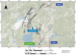 Location of Drilling area relative to ESM #4 and Turnpike (formerly Sphaleros). With the location of Figures 2 and 3 highlighted.