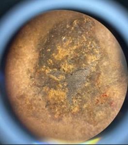 Photos of visible gold in TRXU-DD-23-026 (field of view 1 cm diameter with hand lens)