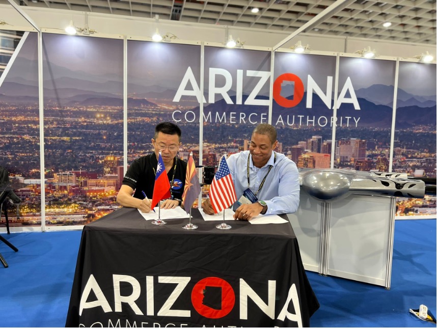 ZenaDrone CEO Shaun Passley signs MOU with General Manager Gene Su of Taiwan Thunder Tiger Corp.