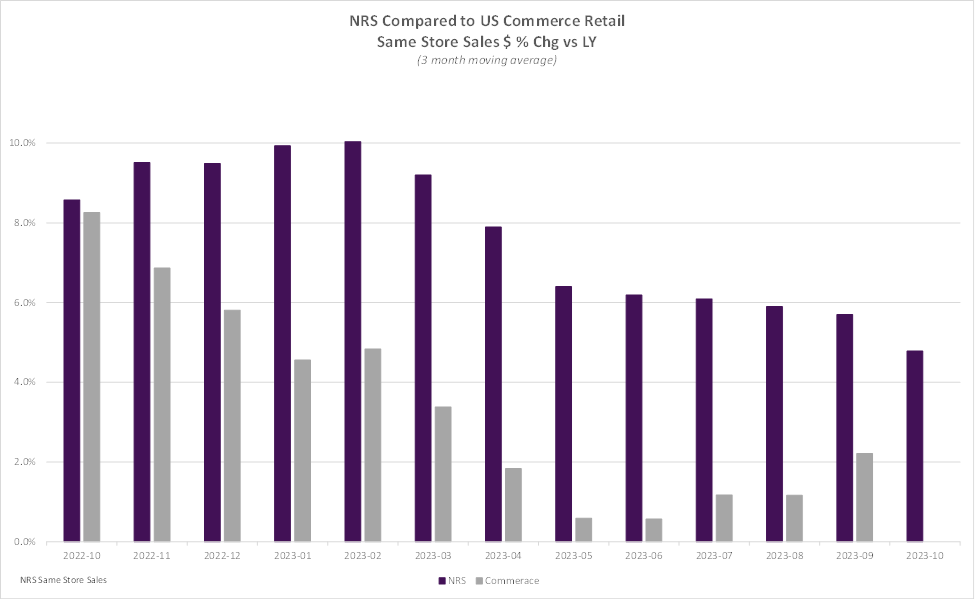 Same-store sales at NRS retailers during November increased 3.1% compared to November 2022