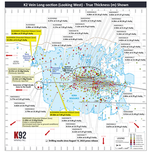 - K2 Vein high-grade extension up-dip from main underground mining area:
