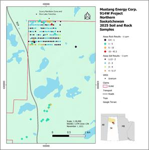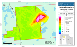 VANCOUVER, British Columbia, Nov. 05, 2025 (GLOBE NEWSWIRE) -- Mustang Energy Corp. (CSE: MEC, OTC:MECPF, FRA:92T) (the “Company” or “Mustang”), in connection with Skyharbour Resources Ltd. (TSX-V: SYH), is pleased to announce the results of a high resolution HTDEM survey at the 914W Uranium Project (the “Project”), totaling 136 line-kms. The Project has road access and is in a prospective region known for its mineral potential south of the Athabasca Basin. The 914W TDEM survey successfully defined a well-developed conductive zone within the Project. The geometry and strength of the anomaly are consistent with graphitic basement rocks or fault-bound alteration zones, both favorable for unconformity-type uranium mineralization.