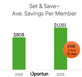 Named the #1 savings app for 2024 and 2025 by Bankrate, Set & Save helps members automatically set aside money for an unlimited number of savings goals. Using artificial intelligence (AI), its smart savings feature learns member income and spending habits to identify and then automatically transfers “safe-to-save” funds into a separate savings account. Oportun members have saved more than $12.3 billion in total using Set & Save since 2015, with an average annual savings of $1,800 per member.