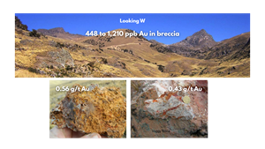 Pucarini Project high sulfidation epithermal alteration with anomalous gold in surface rock geochemistry