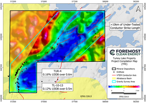 Foremost’s President and CEO Jason Barnard, President and CEO commented: “We are very pleased to receive a three-year exploration permit for Turkey Lake, which allows Foremost to advance this underexplored project along the eastern Athabasca Basin margin. Historic work by industry leaders like Cameco and Denison has already confirmed unconformity-associated uranium in multiple holes, including 0.16% U₃O₈ over 0.6 metres in TUR-4 and 0.12% U₃O₈ over 0.5 metres in TL-10-13. This foundation of past success, combined with shallow unconformity depths and a largely untested 10-kilometre conductor system, presents a compelling opportunity. Furthermore, the current industry landscape is creating a perfect environment for uranium exploration, where significant new discoveries are not just valuable, but imperative. The gravity survey will refine our understanding of the structural framework as we prepare for a targeted drill program in 2026, positioning us to capitalize on powerful market tailwinds.”