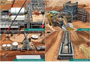 - Key process plant achievements include completion of all CIL tanks and ball mill shell installation, oxide sizer completion, foundation concrete pours for pre-leach and tailings thickeners, and advancement of the hard-rock comminution circuit