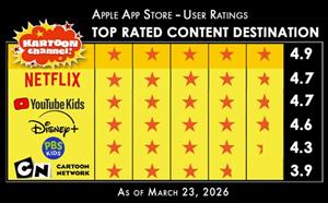 KARTOON CHANNEL CONTINUES TO LEAD ALL COMPETITORS IN APPLE APP STORE VIEWER RATINGS
