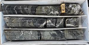 A 3 m run of PQ core from 90 m downhole depth displaying typical mineralization. Note pervasively silicified, fractured andesite and basalt, with abundant pyrite, galena, and sphalerite, along with multiphase quartz veining and brecciation.