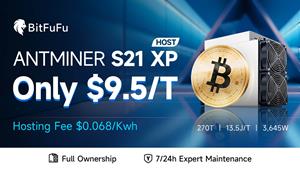 BitFuFu launches ANTMINER S21 XP hosted mining at $9.50/T with $0.068/kWh hosting fee.