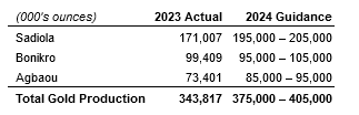 Allied's key focus for 2024 is the sustainable reduction of costs across its asset portfolio. Alongside this, the Company is dedicated to delivering near-term oxide ores at Sadiola and advancing construction activities at Kurmuk, while also continuing its exploration success to extend mine life, particularly in Cote d'Ivoire. Based on ongoing efforts to optimize assets, Allied will release a three-year production and cost forecast in due course.