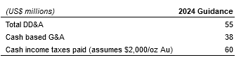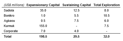 The following table presents expansionary capital, sustaining capital and exploration spend expectations by mine and company-level for 2024: