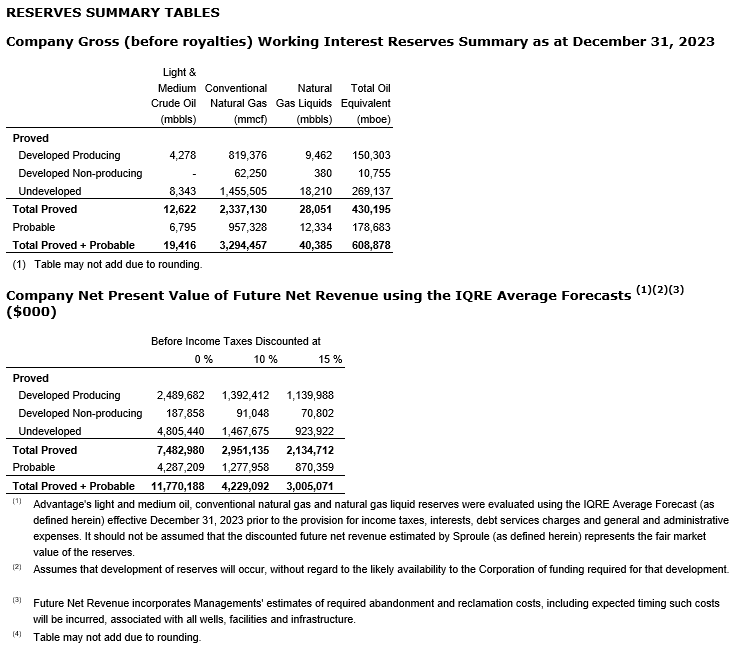 ADVANTAGE ANNOUNCES RECORD 2023 YEAR-END RESULTS, RESERVES AND REDUCED CAPITAL GUIDANCE