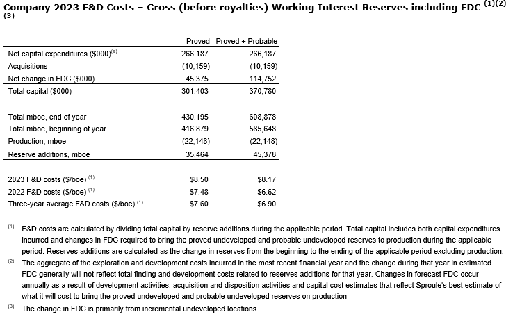 - Three-year recycle ratios were 2.4 times for PDP, 2.0 times for 1P and 2.2 times for 2P based on fourth quarter 2023 operating netback of $15.43 per boe.