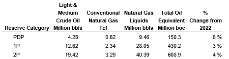 2023 reserves highlights:
