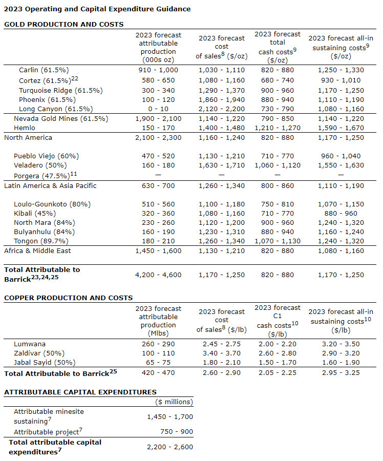 Both mines are well on track to achieve their production guidance for 2023 as well as to replace reserves depleted by mining. In the meantime, exploration across Barrick's licence areas has highlighted new development opportunities across these areas, including a potential new underground mine at North Mara.