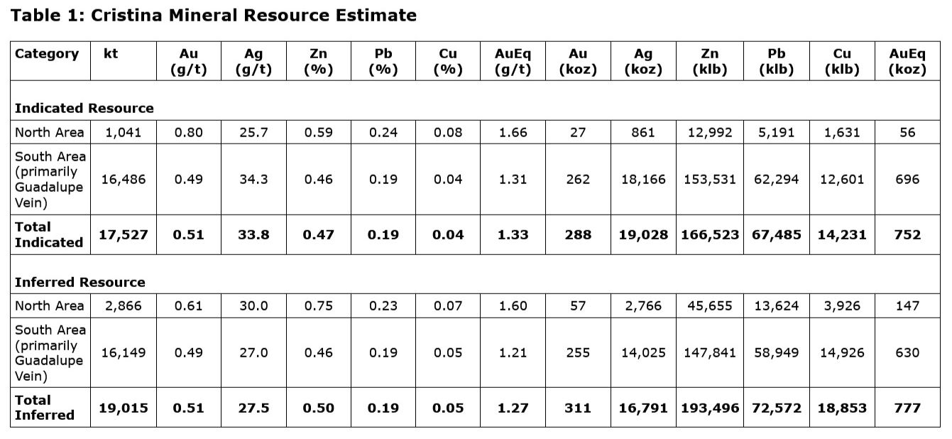 Tim Warman, Atacama's chief executive officer, commented: "We're extremely pleased with the maiden resource estimate for the Cristina deposit, particularly as the deposit remains open along strike and at depth, as well as in at least three other parallel mineralized veins. Once the transaction closes, we intend to continue with an aggressive drilling program at Cristina to grow the resource base, convert inferred to indicated, and target higher-grade shoots within the vein systems. Our technical team believes that this maiden resource may represent the tip of the iceberg at Cristina."