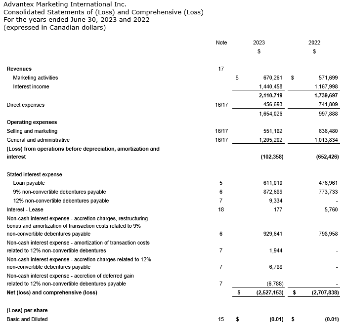 Advantex Marketing International Inc. has released its results for the fiscal year ended June 30, 2023.