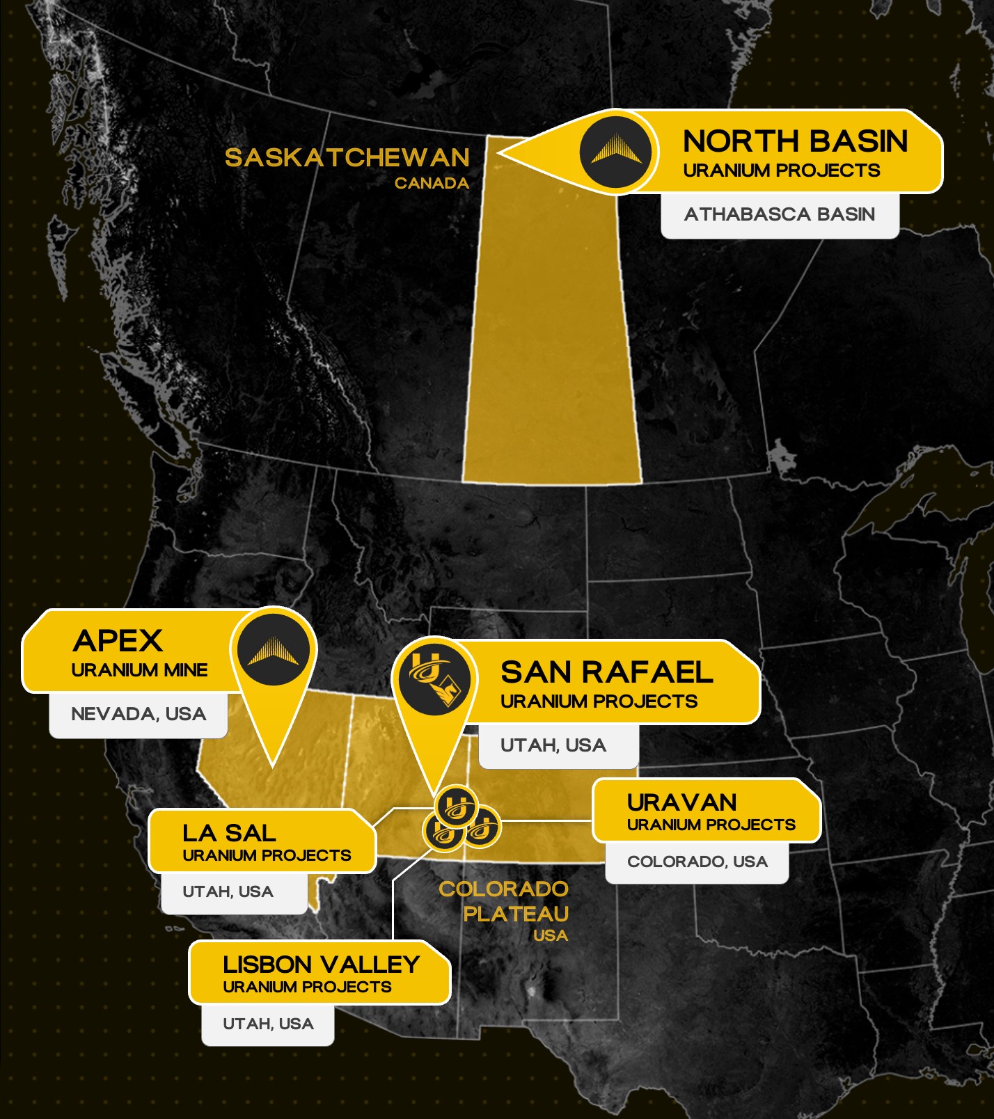 Creation of a Leading North American Pure Uranium Platform: 15 past-producing Uranium mines on 25 underexplored properties covering 25,099 acres in the United States along with Athabasca Basin high-grade potential.