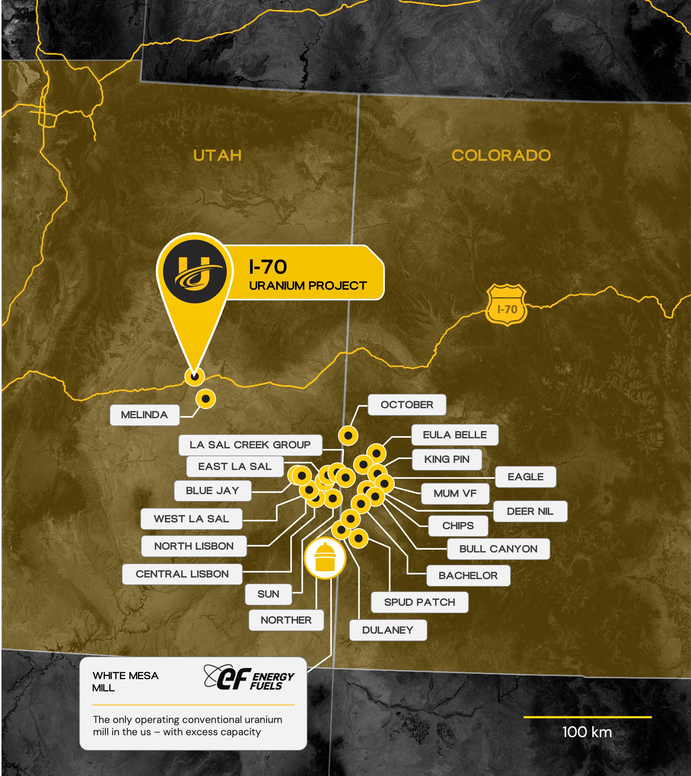 These adjacent Utah projects consolidate a significant land position acres with historic underground workings and drilling, offering immediate exploration upside in a region with a rich uranium production history. Their adjacency to Urano's I-70 Project enhances synergies, enabling consolidated development strategies. Pegasus is advancing permitting, geological modeling, and drilling to define meaningful resources, supported by cost-efficient strategies and a commitment to strengthening North American uranium supply chains.
