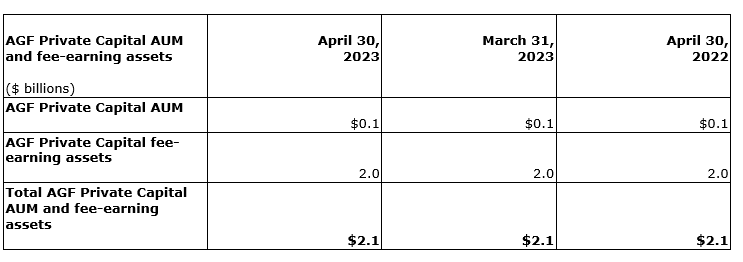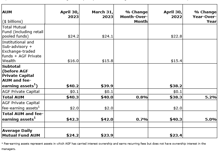 AGF REPORTS APRIL 2023 ASSETS UNDER MANAGEMENT AND FEE-EARNING ASSETS
