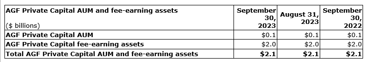 AGF REPORTS SEPTEMBER 2023 ASSETS UNDER MANAGEMENT AND FEE-EARNING ASSETS