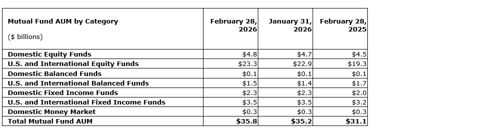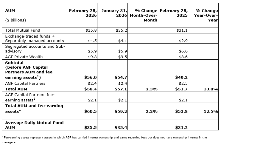 AGF REPORTS FEBRUARY 2026 ASSETS UNDER MANAGEMENT AND FEE-EARNING ASSETS