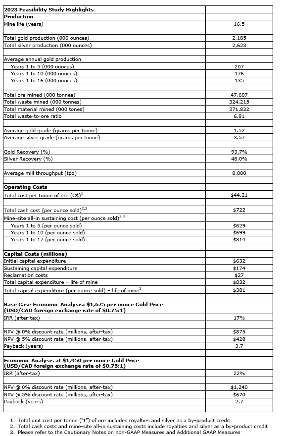 The 2023 study has been updated to reflect the current costing environment, as well as a significant amount of additional engineering, on-site geotechnical investigation work and requirements outlined during the permitting process with the environmental impact statement (EIS) granted in March, 2023. All amounts are in U.S. dollars, unless otherwise stated.