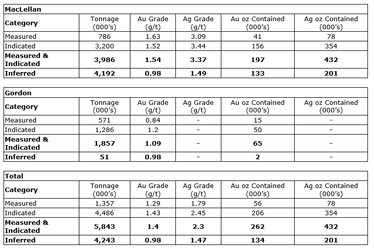 Mineral resources for the Gordon and MacLellan deposits detailed below have not been included in the mine plan but represent potential upside through their incorporation into the mine plan with higher metal prices and additional infill drilling.