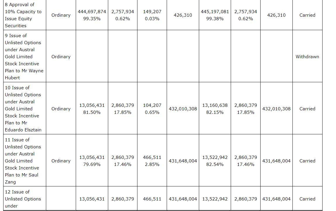 Shareholders of Austral Gold Ltd. passed all resolutions in the notice of meeting dated April 28, 2023, at the general meeting held today at 8:30 a.m. Australian Eastern Standard Time by way of poll.