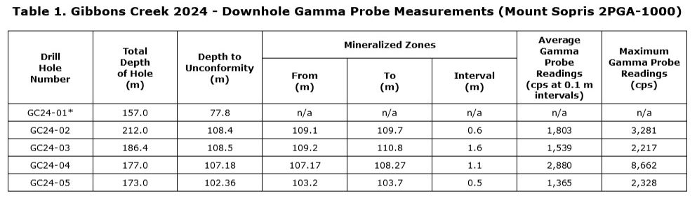 Further drilling is recommended at the Project to search for fault offsets in the area of GC24-04, which can act as structural traps for the deposition of uranium mineralization. All core samples were shipped to Saskatchewan Research Council Geoanalytical Laboratories ("SRC") in Saskatoon, SK for geochemical analysis. A second group of samples were sent to Rekasa Rocks Inc. in Saskatoon, SK, for infrared spectroscopy analysis to determine the nature and quantity of clay alteration present in the core samples. Analytical results will be released following their receipt, compilation and interpretation.