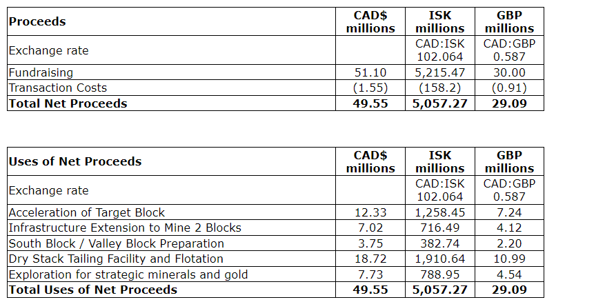 In case of oversubscription of the fundraising, the company may increase the offer size, with the use of additional proceeds to be focused on further exploration at Vagar and Nanoq, and a capital injection into its Gardaq joint venture.